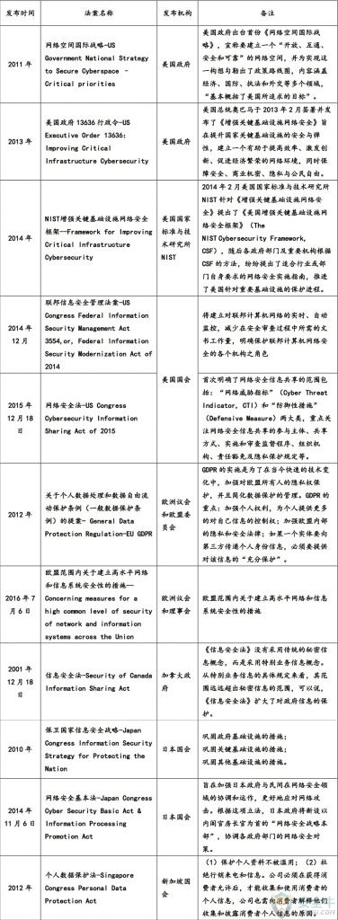 前言 随着我国信息化建设的不断推进和互联网应用的日趋普及,网络安全问题层出不穷:网络入侵、网络攻击等非法活动威胁了我国信息安全;非法获取、倒卖公民信息、侵犯知识产权损害了我国公民的合法利益;危害国家安全、社会稳定与公共利益的不良信息借助网络迅速传播。反观国外,包括欧盟、美国、日本在内的国家或组织纷纷制定了与网络安全相关的法律。 因此,《网络安全法》的制定对我国相关立法工作的重要性、完备性和紧迫性而言非常重要也非常必要。它是落实党中央决策部署的重要举措,是维护网络安全的客观需要,是维护大众切身利益的必然要求,也是我国参与互联网国际竞争和国际治理的必然选择。 《网络安全法》的颁布实施,最重要的意义在于它把网络安全工作以法律形式提高到了国家安全战略的高度,并将信息安全等级保护制度上升为法律,成为维护国家网络空间主权、安全和发展利益的重要举措。同时,它的出台也符合维护网络安全的客观需要,提高了全社会网络安全保护的意识和能力,确保今后网络使用更加安全、开放和便利。 关键内容 √ 基于《网络安全法》要求,对近期与该法相关的法规标准进行了归纳总结,从而为组织机构在法律应对与实施的具体操作中提供参考指南;同时,本指南还识别了其他国家和地区的相关法规和标准,从而为国内组织机构在应对、实施《网络安全法》时提供对比和参考内容。 √ 本指南从网络安全管理、网络安全技术和个人信息保护等三方面的法律、法规监管要求出发,为组织机构提供了合规差距分析的参考维度及相应的合规要求;同时,在合规应对实施环节,从网络运营安全、网络信息安全及关键信息基础设施保护等三方面,就“相关责任方”、“管理措施”及“技术措施”等三个维度总结了具体实施要点。 √ 为确保组织机构建立完善的信息安全管理体系,本指南以信息安全等级保护制度和网络安全等级保护及其他法规要求为基础,总结并设计出了包括安全策略、安全管理和安全技术在内的等级保护体系;同时,基于《网络安全法》中对组织人员能力和意识的要求,给出了相应的教育模型和培训案例,最终实现组织信息安全的持续改进。 引言 2017年6月1日正式实施的《网络安全法》具有里程碑式的意义。它不仅是我国第一部网络安全的专门性综合性立法,提出了应对网络安全挑战这一全球性问题的中国方案,彰显了党和国家对网络安全问题的高度重视,同时,它还是我国网络安全法治建设的重要里程碑,使得今后我国网络安全管理工作步入法制化轨道,信息安全行业将由合规性驱动过渡到合规性和强制性驱动并重的新阶段。 《网络安全法》在网络空间主权、国家网络安全等级保护制度、关键信息基础设施保护、网络运营者、网络产品和服务提供者义务、保障网络信息安全,个人信息保护、关键信息基础设施重要数据跨境传输、监测预警与应急处置等方面做出明确规定。因此,国内组织机构,特别是涉及关键信息基础设施的行业机构在践行《网络安全法》时,一方面应切实履行好自身网络安全工作的责任与义务,另一方面,还需要依据《网络安全法》的法律要求进行落地实施,有效提高自身的网络安全保护水平。 一、《网络安全法》概述 1. 立法背景 2014年2月中央网络安全和信息化领导小组成立,标志着我国把网络安全提升到了国家安全的高度并开始酝酿网络安全法编写工作;2015年6月十二届全国人大常委会审议了《网络安全法(草案)》,2016年7月二次审议稿正式在中国人大网公布,并向社会公开征求意见;2016年11月7日,历经全国人大常委会两次审议的关于我国网络安全管理的法律《中华人民共和国网络安全法》最终审议通过,并于2017年6月1日正式实施。 与国外立法相比,《网络安全法》历经三年就发布实施无疑是快速的。这是因为中国当前的网络安全迫切要求。网络已经深刻地融入了中国经济社会生活的各个方面,网络安全威胁也随之向经济社会的各个层面渗透,网络安全的重要性随之不断提高。 一方面,党的十八大以来,国家主管部门加强了国家网络安全工作并做出了重要的部署,对加强网络安全法制建设提出了明确的要求,制定《网络安全法》是适应我们国家网络安全工作新形势、新任务,落实中央决策部署,保障网络安全和发展利益的重大举措,是落实国家总体安全观的重要举措。另一方面,中国是网络大国,也是面临网络安全威胁最严重的国家之一,迫切需要建立和完善网络安全的法律制度,提高全社会的网络安全意识和网络安全保障水平,使我们的网络更加安全、更加开放、更加便利,也更加充满活力。 在这样的形势下,制定网络安全法是维护国家广大人民群众切身利益的需要,是维护网络安全的客观需要,是落实国家总体安全观的重要举措。 2. 立法意义 《网络安全法》旨在保障我国网络安全,维护网络空间主权和国家安全、社会公共利益,保护公民、法人和其他组织的合法权益,促进经济社会信息化健康发展。其立法的意义主要体现在以下几点: