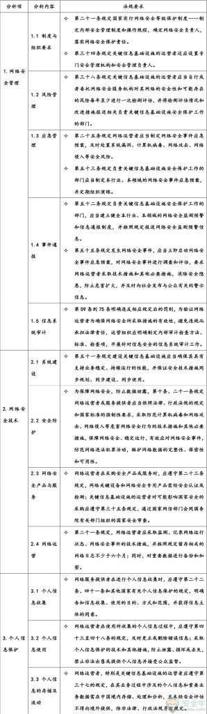 组织在实施《网络安全法》时,可以根据自身的需要对其他国家和地区的相关法规和标准进行识别,其目的一方面使国内机构借鉴国外的一些网络安全最佳实践,同时可以为国外组织在国内实施网络安全合规要求时,建立一个可以对比的参照系。 国外网络安全相关法规 2. 合规差距分析 以《网络安全法》为基础,网络运营者应从网络安全管理、网络安全技术和个人信息保护三方面综合考虑各项法律、法规的监管要求,通过对组织现状的了解,对组织当前合规情况进行差距分析。 《网络安全法》合规差距分析 3. 合规对应实施 《网络安全法》具体合规实施时,可以从网络运营安全、网络信息安全及关键信息基础设施保护三个方面,描述对应的保护要求和对应条款,分别从“相关责任方”、“管理措施”及“技术措施”三个维度分析其具体实施要点。以下举例说明。 3.1 网络运营安全控制措施 3.2 网络信息安全控制措施 3.3 关键信息基础设施安全控制措施 三、信息安全体系完善 按照《网络安全法》实施网络安全控制措施,是当前国内各类组织在信息安全方面的重要实践,但我们也要清醒地看到,落实法律的合规要求只是组织信息安全的最基本要求,法规不可能面面俱到。因此,就算组织逐条落实了法规的要求,也只是达到了合规的基本要求,也不能保证组织的信息安全体系达到一个完善的水平。 因此,在合规的基础上,我们建议组织根据《网络安全法》的要求,通过等级保护的方法来进一步完善信息安全保障体系,通过人员安全培训与意识教育来提升组织的人员安全能力,通过持续安全评估与IT审计来推进安全体系持续完善。 1. 等级保护相关规范标准 信息安全等级保护制度是国家信息安全保障工作的基本制度、基本策略和基本方法,是促进信息化健康发展,维护国家安全、社会秩序和公共利益的根本保障。 组织可以基于合规差距分析结果并参照网络安全等级保护和其他法规对信息安全的要求,建立健全组织信息安全保障体系,部署并完善安全管理策略和安全技术措施,持续稳定地提升信息安全水平。 到目前为止,国家制定与颁布了与等级保护相关的多个国家标准,一些重点行业也制定了本行业的信息安全等级保护标准,等级保护的方法近年来在国内得到广泛的应用。 已经发布的等级保护相关标准: