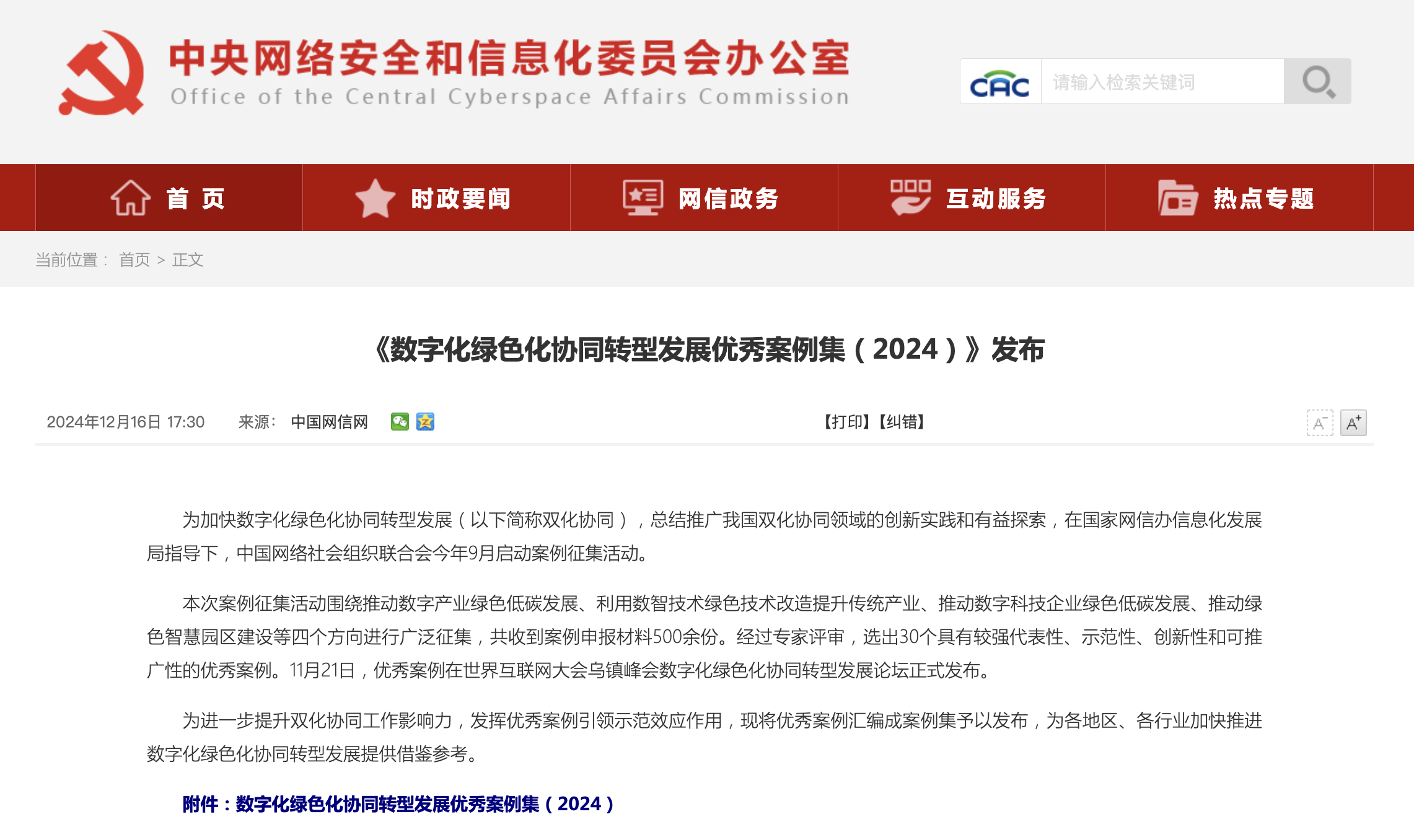 为加快数字化绿色化协同转型发展(以下简称双化协同),总结推广我国双化协同领域的创新实践和有益探索,在国家网信办信息化发展局指导下,中国网络社会组织联合会今年9月启动案例征集活动。