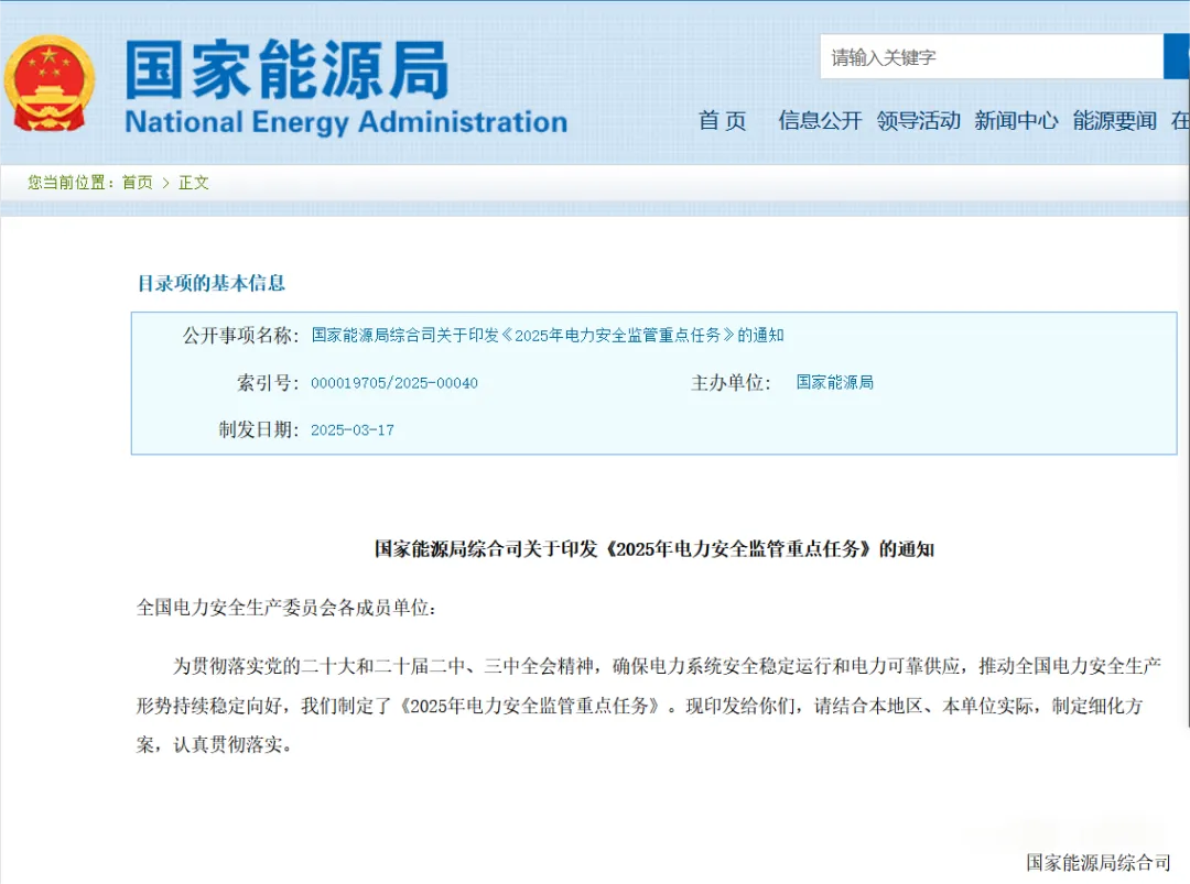 1、国家能源局印发《2025年电力安全监管重点任务》