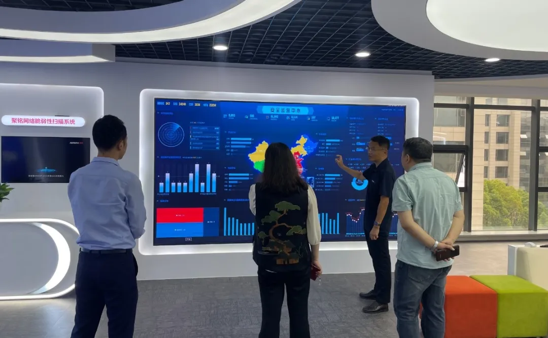 调研过程中,中国(南京)软件谷管委会领导一行深入了解了企业发展运营情况,听取了聚铭总经理唐开达关于公司业务布局、技术创新成果及市场服务情况的汇报。领导们对聚铭在网络安全领域的深耕细作给予充分肯定,并勉励企业继续发挥示范引领作用,为区域高质量发展持续注入动能。