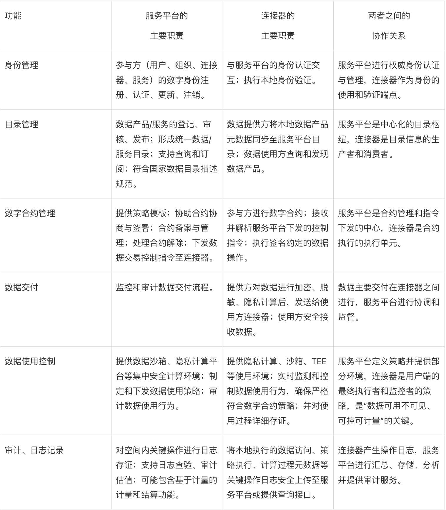可信数据空间服务平台与连接器功能对比