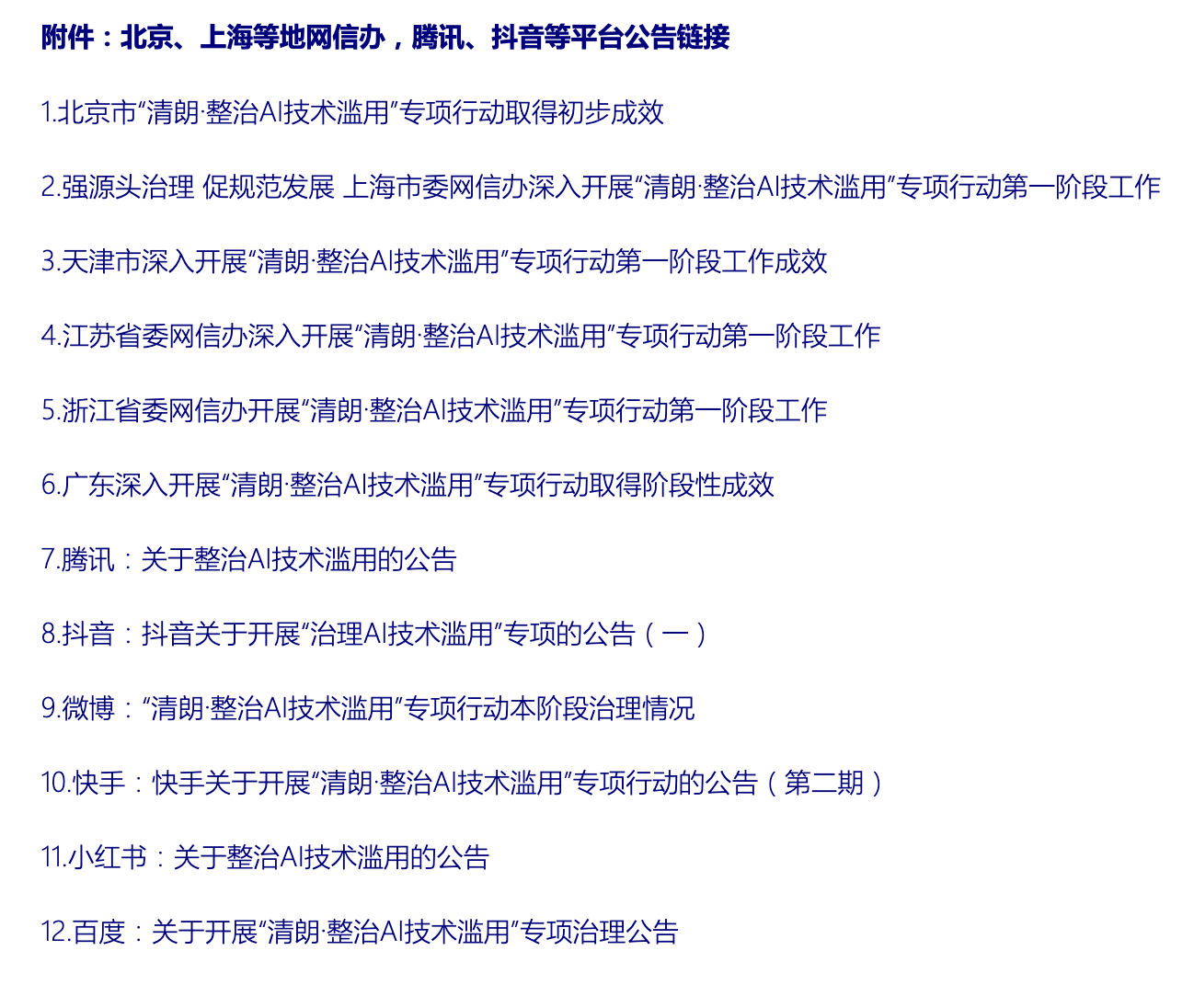 重点网站平台积极履行主体管理责任,加强AI技术滥用源头治理。在处置违规AI产品方面,腾讯规范应用程序管理,提高准入门槛,优化巡查机制,驳回、处置违规小程序、应用程序等共计570余款。在清理违规AI产品教程和商品方面,微博通过策略识别、用户举报等多渠道审核,累计处置违规内容4800余条,并公布典型案例。在加强训练语料管理方面,通义平台围绕数据生命周期建立安全管理体系,在数据采集、训练、使用等阶段加强训练语料管理。在强化安全管理措施方面,抖音建立“红蓝对抗”机制,模拟攻击案例,修复潜在安全漏洞,优化模型对虚假信息的识别能力。在落实内容标识要求方面,阿里、快手、稀宇等重点平台积极推进元数据隐式标识落地落实。在防范重点领域安全风险方面,小红书在模型后置训练阶段输入专业领域数据,提升模型对医疗、金融、未成年人等重点领域问题的理解能力。