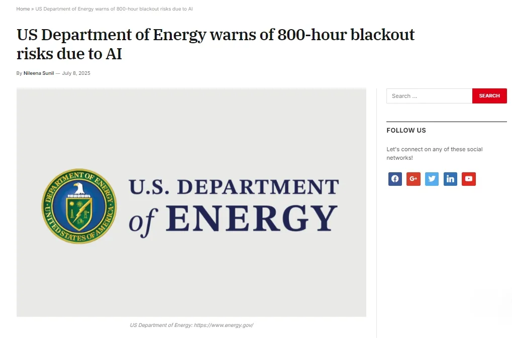 5、美国能源部警告:AI或将引发长达800小时的大停电