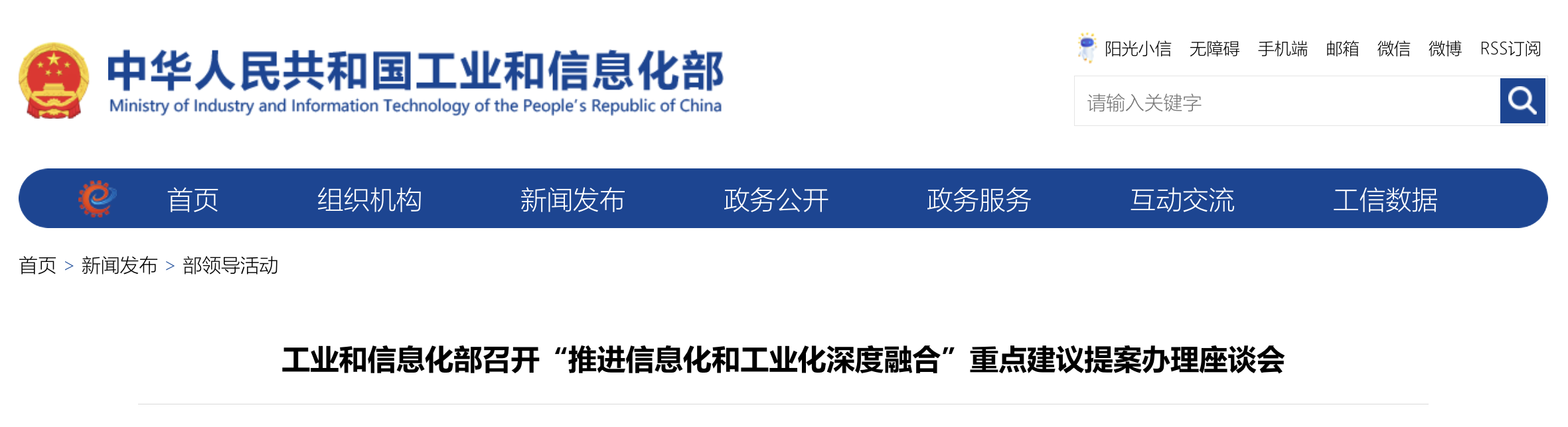 工业和信息化部召开“推进信息化和工业化深度融合”重点建议提案办理座谈会 |