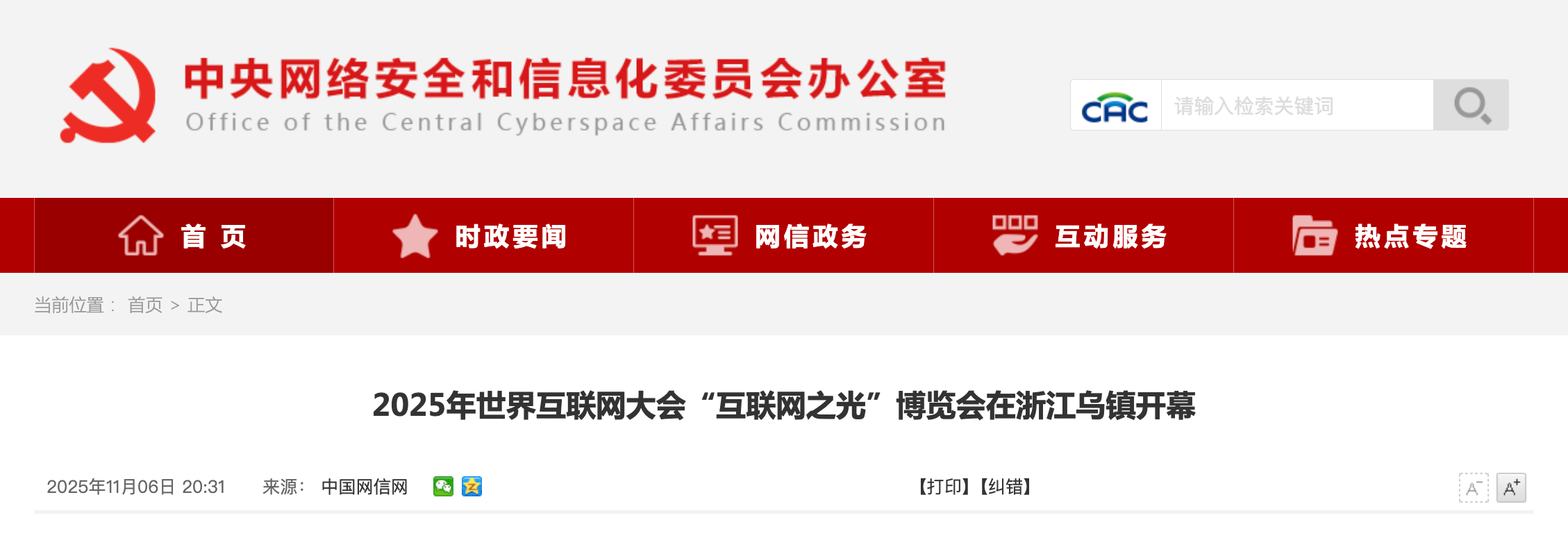 信息来源:中央网络安全和信息化委员办公室 https://www.cac.gov.cn/2025-11/06/c_1764156718784508.htm