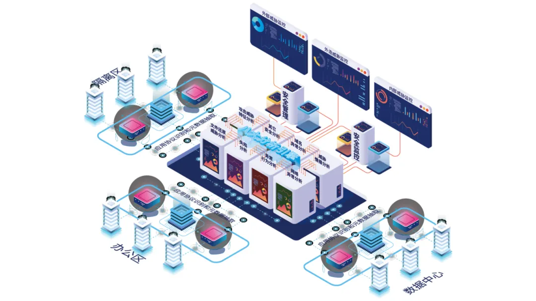 聚铭网络流量智能分析审计系统(iNFA)以全流量还原为基础,结合互联网风险暴露面绘制、失陷分析、网络攻击检测、威胁情报分析、隐蔽通道检测、挖矿行为检测、核心数据外泄防御、异常流量行为挖掘、文件检测、网络质量检测、域名异常检测、恶意软件加密流量检测等技术,对全网流量实时进行威胁感知、可疑流量分析,是对传统安全防御系统的完善和补充,能在高级威胁入侵时,及时察觉,及时止损。