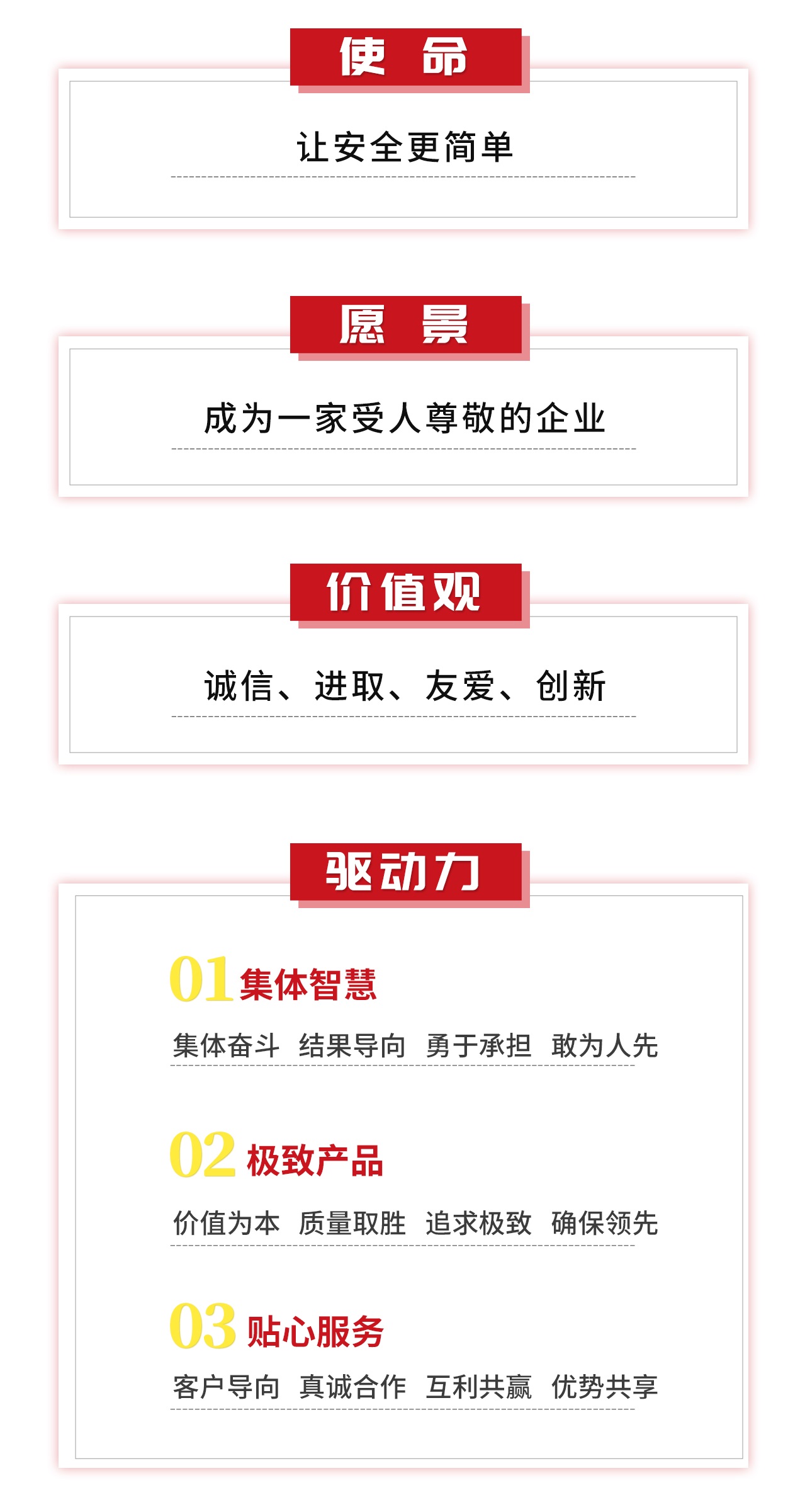 公司将始终秉承“客户导向、真诚合作、互利共赢、优势共享”的服务理念,以先进的技术、优秀的产品和专业的配套服务,引领国内网络安全行业的发展方向。