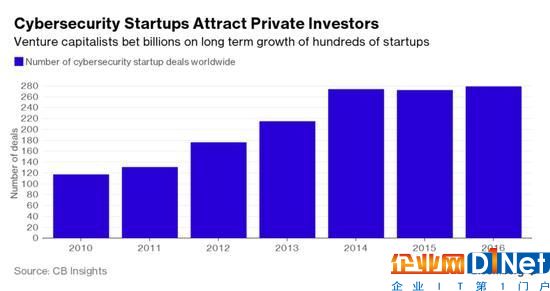 据市场研究公司CB Insights称,2016年,风投公司投资的网络安全创业公司数量达到创纪录的279家,投资总额达到31亿美元。2015年,这两项数字则分别为272家和37亿美元;2010年,这两项数字分别为117家和8.33亿美元。
