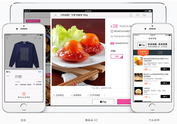 6、通过官网可以看到,初期支持Apple Pay的第三方应用,包括当当、唯品会以及大众点评,估计很快就会爆发式增长的。