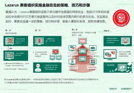 · 实施盗窃:最后,他们会部署特殊的能够绕过金融软件内部安全检测的恶意软件,以银行的名义进行假冒的银行转账。