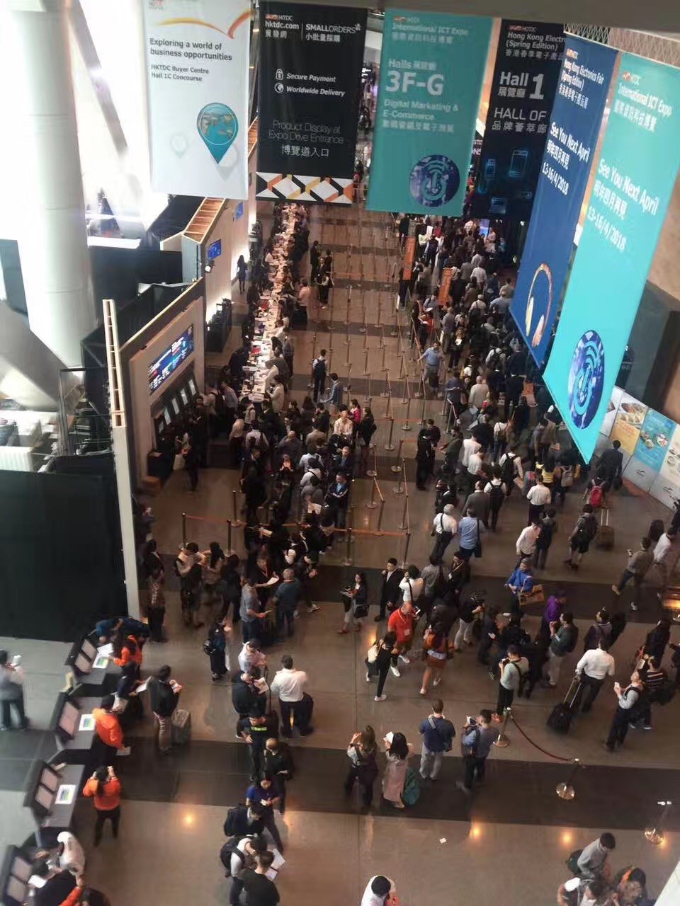 北京时间4月13日,香港国际资讯科技博览会(ICT)隆重开幕,聚铭网络应邀参展香港国际资讯科技博览会,开幕第一天会场人山人海,买家、卖家云集。