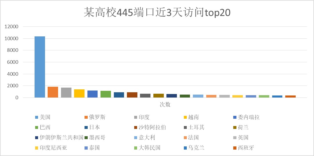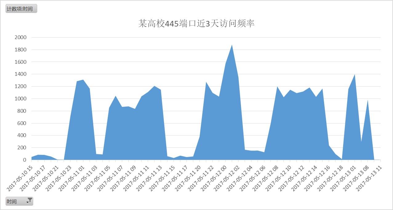 445端口的访问频率非常高,三天内访问次数多达37151次,5月12日凌晨1点被访问高达1800多次:
