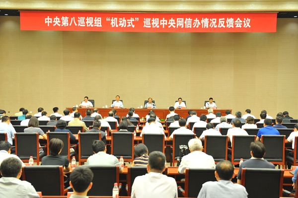 中央第八巡视组向中央网络安全和信息化领导小组办公室反馈“机动式”巡视情况(中央纪委监察部网站 张祎鑫 摄)