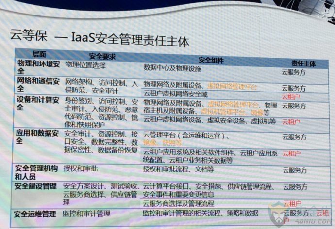 除此之外,IaaS、PaaS、SaaS服务的安全管理责任主体及对象(安全组件)也需要明确。