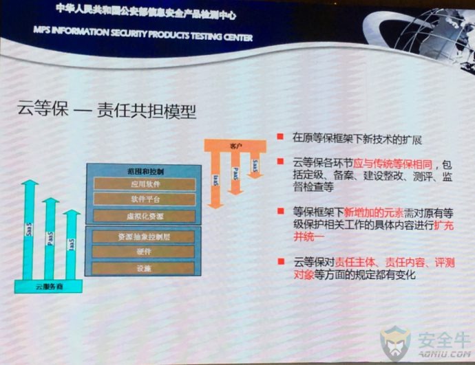 据公安部第三研究所云计算安全测试实验室的负责人陈妍介绍,云等保在等级保护的原有框架下对具体内容进行了扩充,责任主体、责任内容和评测对象等规定均有变化。其中,云租户的安全与云平台息息相关,却又互相独立。