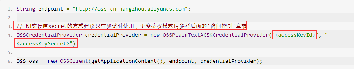 图 官网OSS凭证信息示例代码