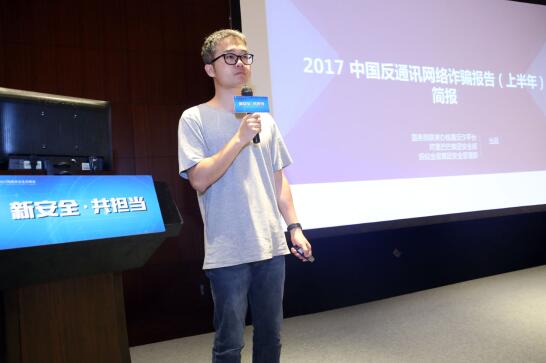 钱盾反诈平台专家沈杰正在解读《2017上半年中国反通讯网络诈骗报告》
