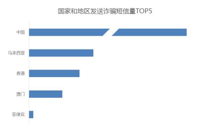 据《2017年中国反通讯网络诈骗报告(上半年)》数据显示,随着国内手机实名制等制度的完善,诈骗短信的国际化趋势非常明显。上半年,钱盾App拦截到的诈骗短信中,有接近5%来自中国大陆以外,其中大部分来自于东南亚及中国香港、澳门地区。马来西亚是除中国大陆以外的第一大诈骗短信来源地,数量多,增长明显。
