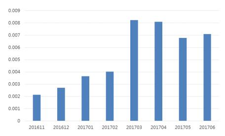 图5 2017年上半年中国大陆以外地区诈骗电话占比趋势