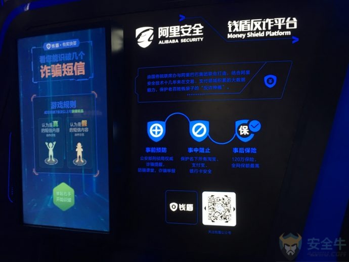 阿里安全与国务院联席办联合打造的“钱盾反诈平台”也在反诈之列。结合阿里安全突出的恶意号码识别能力、淘宝和支付宝自身风控体系对用户的刻画、与公安部刑侦局的警情数据的打通和与12321举报中心的合作,让钱盾有了更多方面数据支持和对诈骗行为更精准的判断。同时,和支付宝风控机制的联动,也让钱盾可以在资金链条上对诈骗行为实现更为及时阻断。