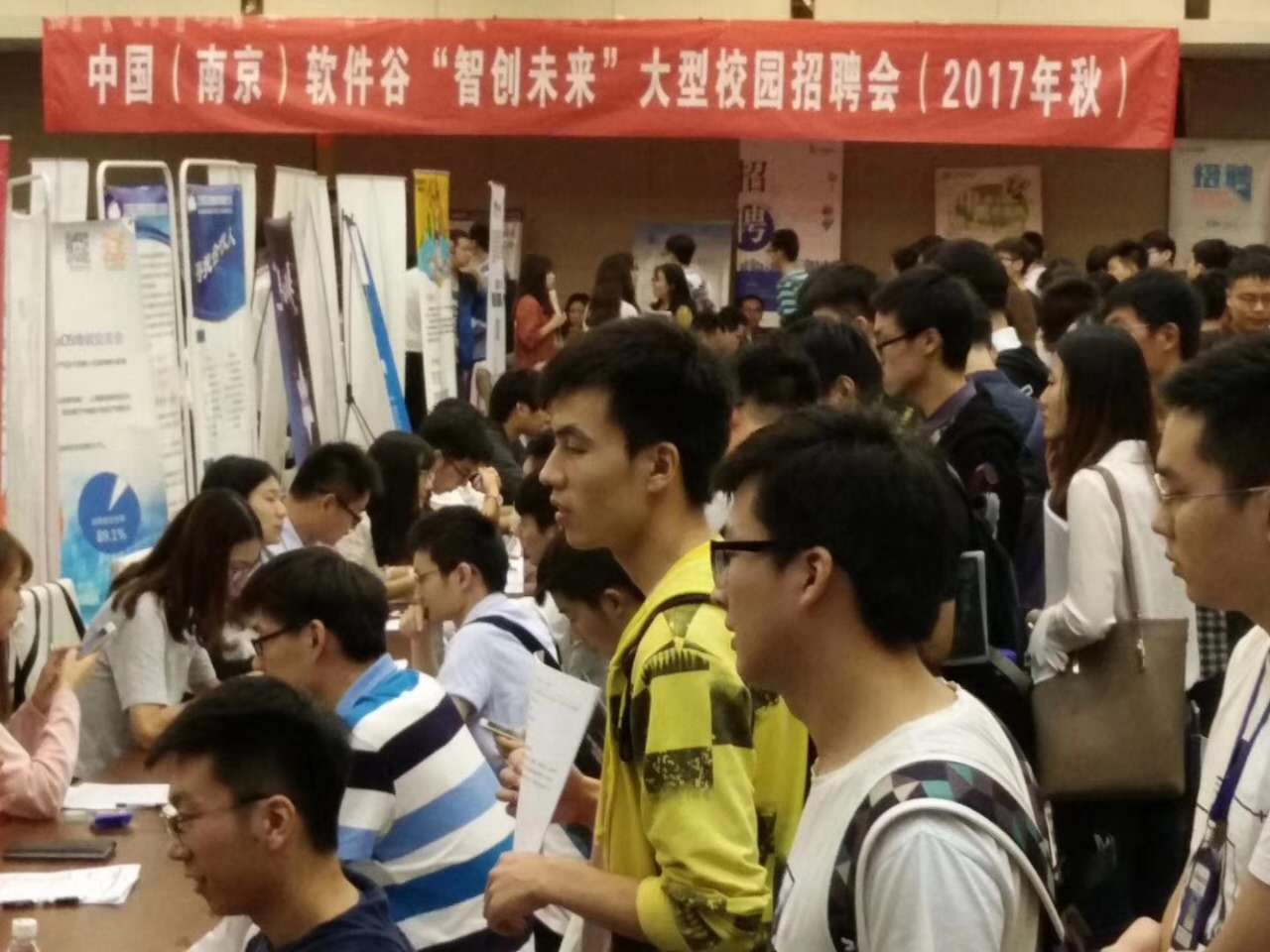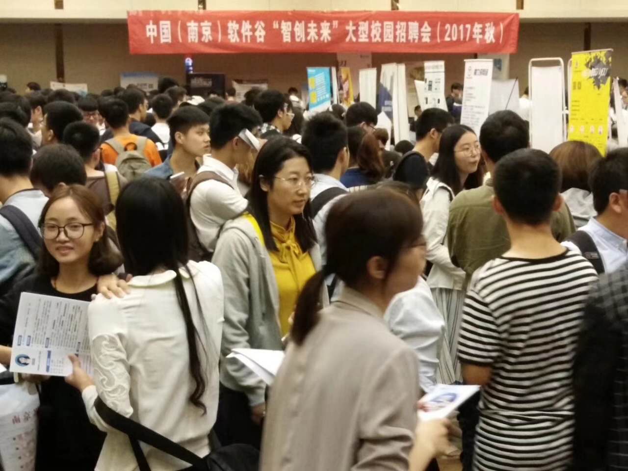 9月24日,中国南京软件谷大型秋季校园招聘会在楚翘城如期举办,软件谷内众多企业参加,招聘会现场毕业生往来不断。