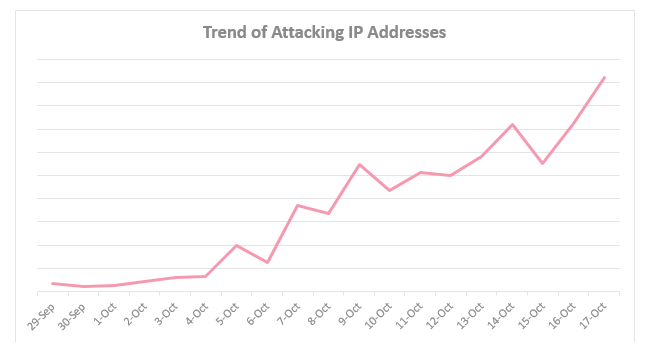 Check Point警告称:“目前为止我们估计全世界有超过一百万个组织已经受到恶意软件感染,其中包括美国和澳大利亚等许多国家。”该公司的研究开始于今年9月份,研究团队声称很快意识到他们偶然发现了一个正处于扩张阶段的巨大物联网僵尸网络。