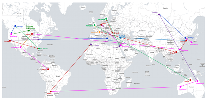 在9月份底的时候,Check Point就提出,未知黑客在物联网设备上探索现存漏洞的攻击越来越多。该研究发现,有恶意软件正在侵袭无线网络摄像头,比如说D-Link、MikroTik、TP-Link和Linksys等。这些尝试性的恶意软件渗透有着不同的来源,这就表明有一个僵尸网络隐藏在背后。