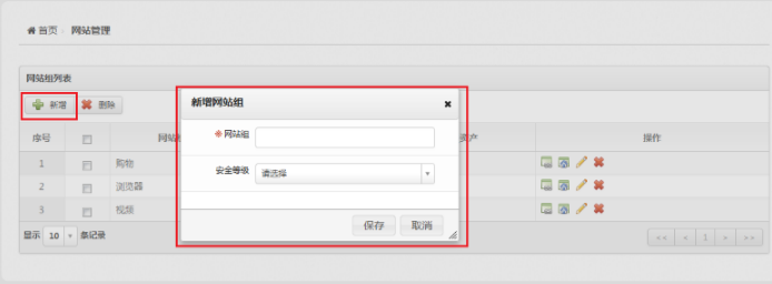 网站组属性包括名称和安全等级。