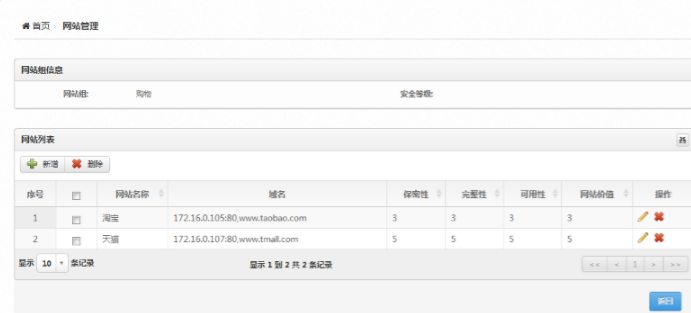 聚铭安全态势感知与管控中心新版发布,新增网站管理功能,可设置多个网站组,网站组可以绑定资产,可以添加多个需要监控的网站,便于监控网站的风险情况。