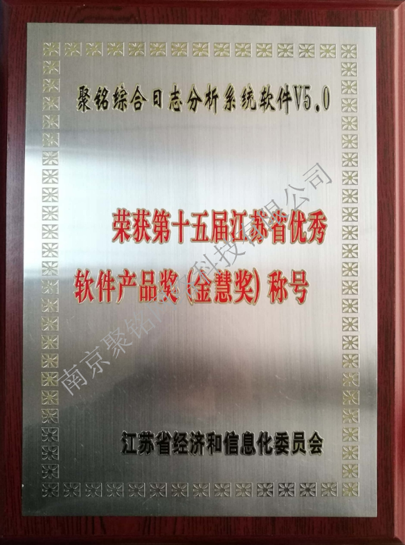 日前江苏省经济和信息化委员会公布了第十五届江苏省优秀软件产品奖“金慧奖”获奖产品名单,聚铭综合日志分析系统软件产品从众多参选软件中脱颖而出,获此殊荣,荣获第十五届(2017年度)江苏省优秀软件产品奖(金慧奖)称号。