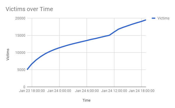 一旦设备被感染,僵尸网络背后的黑客就可以使用命令来控制它。目前僵尸网络已经从最初的 12 个受损设备增加到 2 万多个。