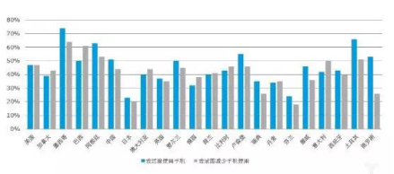 图:2017年担忧与试图减少手机使用的成年用户占比