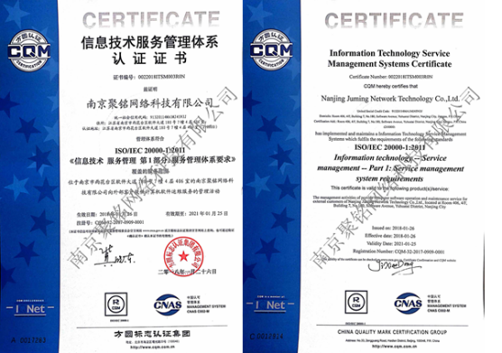 此次两项认证的获得,充分体现了聚铭网络在IT服务和信息安全管理方面已经达到了一个高水准,公司从产品到运营、从对外服务到内部支撑都建立了领先的标准化管理流程体系,按照国际标准严格把控运营、产品、管理、服务等各个环节,同时也减免了网络威胁、数据泄露和欺诈的风险。