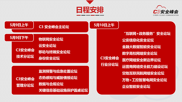 随着移动网络便利程度的不断提高,现实与虚拟的边界也将越来越模糊,黑客正在组织一个庞大的网络黑色产业链,通过贩卖公民隐私信息、网络攻击工具等方式牟取暴利。若要向移动网络黑产说“NO”,仅凭一两家企业的单打独斗远远不够,需要整合网络安全业界的力量。在本次C3安全峰会上,我们期待与会的网络安全厂商会在打击移动网络黑产方面达成更多共识。主题推荐:企业 EDR 实践与思考;云时代的移动办公创新、架构和实践;移动网络黑产等。