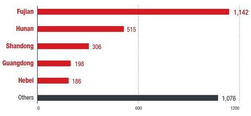 国内地区在扫描活动中的IP地理分布情况,福建成重灾区
