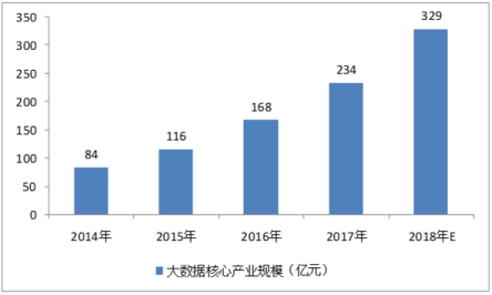 数据来源:工业和信息化部 (三)大数据发展和应用加快推进 数据资源日益成为重要生产要素和社会财富,信息掌握的多寡成为国家软实力和竞争力的重要标志。国家层面相继出台《促进大数据发展行动纲要》、《关于推进公共信息资源开放的若干意见》、《大数据产业发展规划(2016-2020年)》,加强数据资源规划建设,加快完善数字基础设施,推动数据资源整合和共享开放,推动大数据技术产业创新发展。国家有关部门加快推进重点领域数据资源建设、有效整合和安全利用,不断提升数据资源的在线共享和服务能力。 国家数据资源体系整体谋划和建设加快。推动建立完善数据基础性制度,加快推动构建统一高效、互联互通、安全可靠的国家数据资源体系。数据资源共享开放应用机制逐步完善。加快建设覆盖全国、统筹利用、统一接入的数据共享大平台,推进国家大数据发展工程建设,基本建成人口、法人、自然资源和地理空间、宏观经济等基础数据库,国家人口基础信息库已经通过验收并面向全国政务部门提供服务。加快推进哲学社会科学领域学术资源整合和共享,国家哲学社会科学文献中心整合哲学社会科学学术信息资源1600多万条,上线学术论文930余万篇,累计下载量超过1000万篇。加快完善科学大数据资源体系和公共服务云平台建设。全国公安机关全面实施大数据战略,实现跨地区、跨部门、跨警种信息共享,实现信息处理从单一汇聚到多元服务的技术升级,推动打击犯罪新机制实现重大突破,利用信息化技术全面提升破案率,命案破案周期大大缩短,整体破案成本显著降低。大数据安全保障工作逐步展开。《网络安全法》颁布实施,明确保障数据安全总体要求。加紧制定《关键信息基础设施安全保护条例》,强化关键信息基础设施和大数据安全保护,有关部门加强对数据违法交易等行为进行联合整治。大数据技术产业创新发展。根据有关机构测算,2017年我国大数据核心产业规模为234亿元,同比增长39%。大数据应用正在从互联网、电信、金融、交通、医疗等领域向传统领域拓展。我国大型互联网企业在海量数据采集、存储和处理等方面能力跻身国际前列。 图3 我国大数据核心产业规模