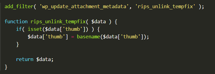 所有提供的修复程序都会挂接到wp_update_attachement_metadata()调用中,并确保为元值提供的数据thumb不包含任何使路径成为可能的部分。因此,不能删除与安全相关的任何文件。