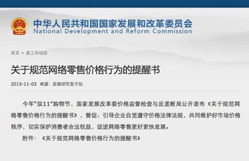 发改委发文规范双11网购:“今日特惠”等宣传词涉嫌价格违法
