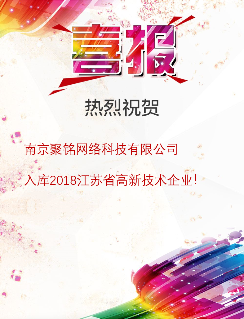 2018江苏省高新企业培育库拟入库企业名单公布啦!江苏省3735家企业入选,南京938家企业入选,聚铭网络入库啦,恭喜聚铭网络!