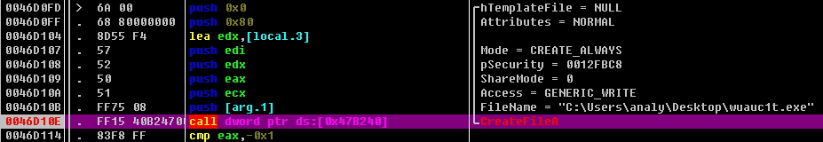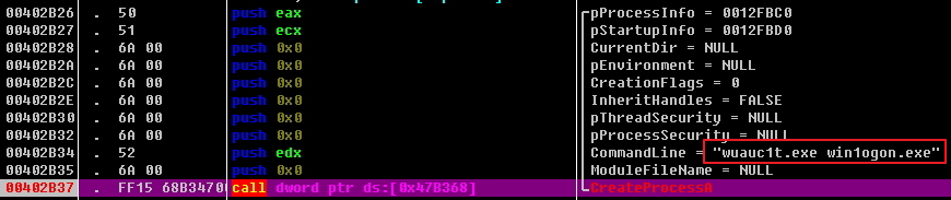 wuauc1t.exe的功能为抢占CPU资源,由1sass.exe释放到同一目录下并运行,运行时传入参数“win1ogon.exe”。