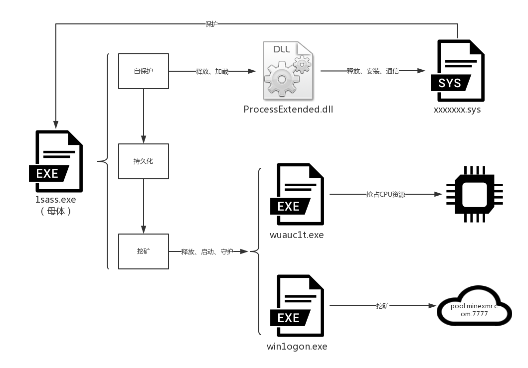 近日,深信服安全团队追踪到一新型的挖矿病毒,该病毒与普通挖矿病毒有很大差异,普通挖矿没有特殊防护,而该病毒采用了驱动进行防护,十分罕见。