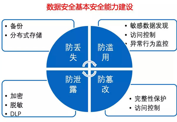 数据脱敏:在开发测试和运维环节,建设数据静态/动态脱敏手段,确保生产数据的抽取、查看受到严格保护;在应用系统后台管理中严格限制数据导出落地,同时在系统中做好日志埋点;