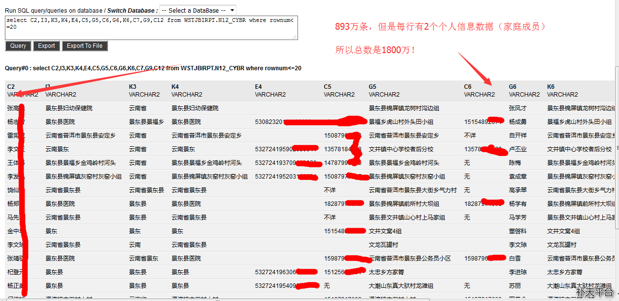5. 云南省卫生厅某系统getshell泄露1800万个人信息#涉及姓名/地址/号码/身份证等