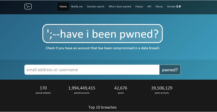 Have I Been Pwned主页面