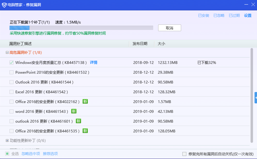 4.1.2 培养良好的计算机使用习惯 个人需提高计算机网络安全意识,不轻易下载不明软件程序,不轻易打开不明邮件夹带的可疑附件,注意识别&不轻易打开可疑的网站,及时备份重要的数据文件。 4.2. 企业用户漏洞防护 4.2.1 建立有效的漏洞情报监控体系,建设完善的漏洞补丁管理能力 建立起有效的安全情报监控体系,密切关注各大安全媒体如“御见威胁情报中心”的威胁情报预警。 同时需要做好生产力工具的安全管理,积极安装最新补丁,修复漏洞,时刻保证个人/企业使用的设备、软件、硬件的安全性,缩短漏洞平均存续期,可以大大减少被不法分子攻击的可能。使用腾讯御点终端安全管理系统可以全网统一安装系统补丁,提升客户端的安全性。
