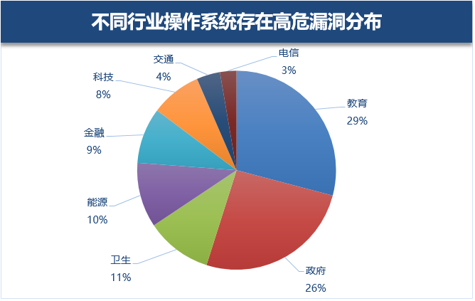 根据腾讯御见威胁情报中心数据监测, Windows操作系统存在高危漏洞在教育、政府、卫生医疗行业占比最高。
