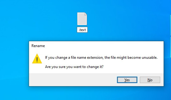 但是在Windows 2019年4月10日更新版本中,文件资源管理器允许您将文件重命名为“.test”。