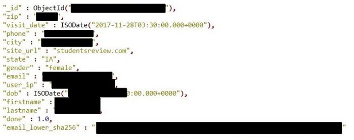这些记录中的信息,包括了电子邮件、用户 IP 地址、出生日期、邮政编码、地址、性别、电话号码等内容。安全专家称之为‘一组完全独特的数据’。